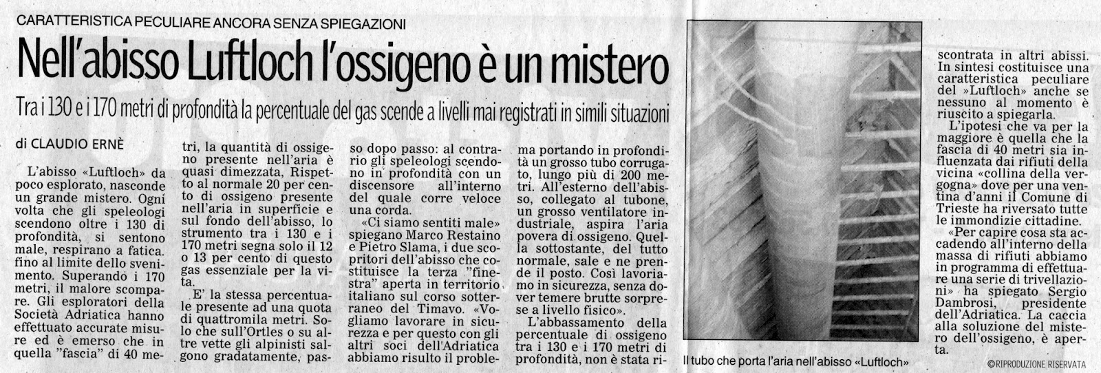 Luftloch l'ossigeno è un mistero" e l'articolo descrive